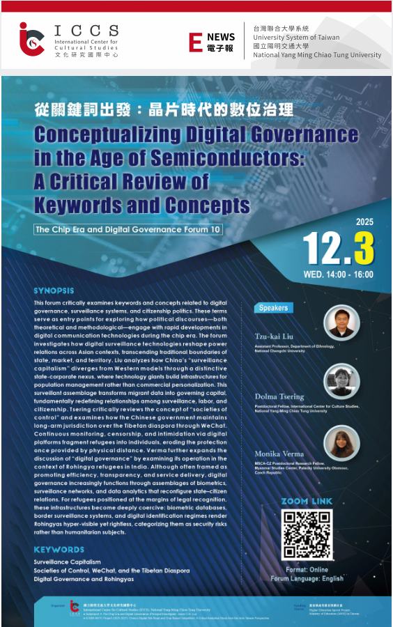 【文化研究國際中心】線上講座|12/3 14:00|Conceptualizing Digital Governance in the Age of Semiconductors: A Critical Review of Keywords and Concepts 從關鍵詞出發:晶片時代的數位治理