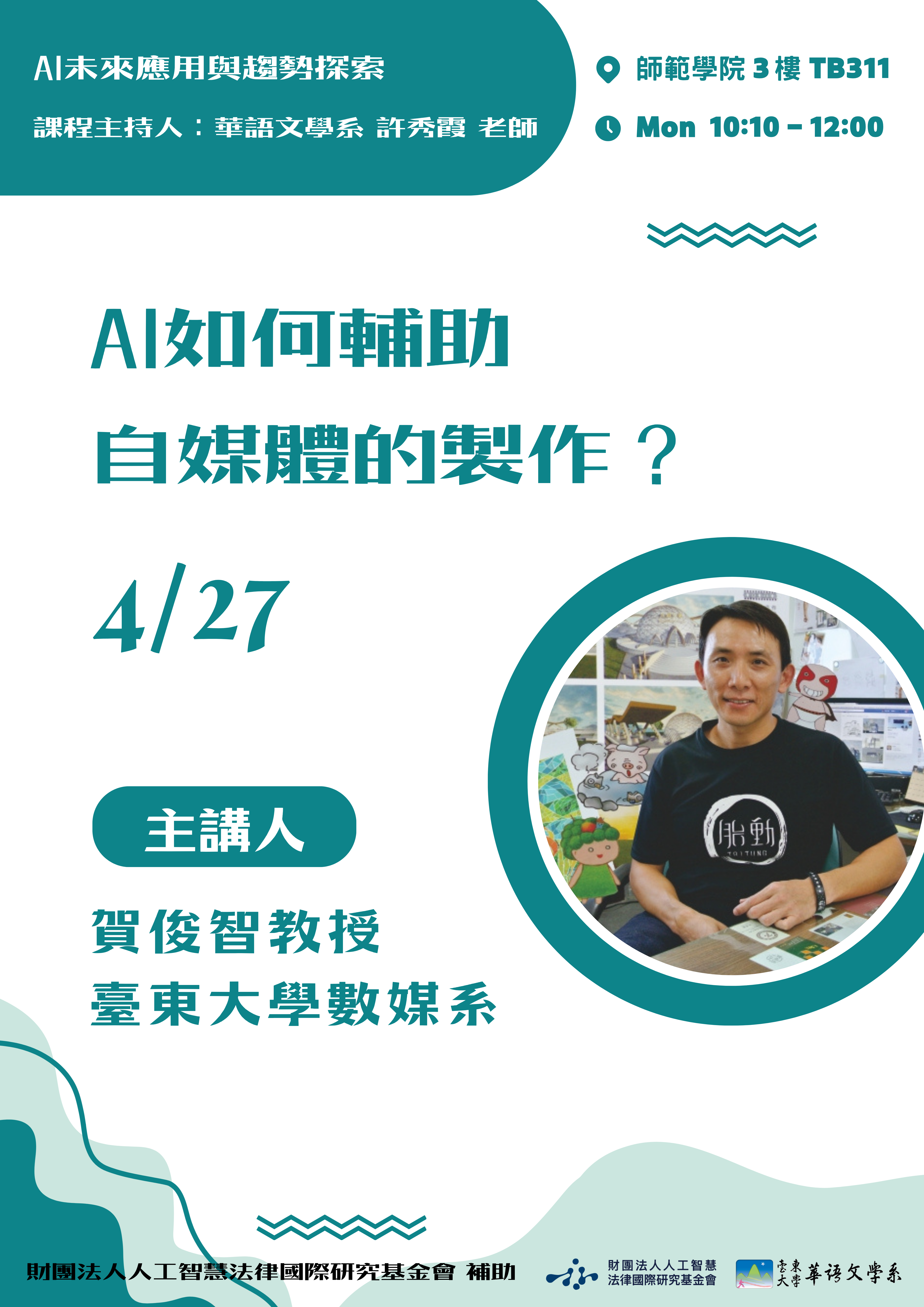 【AI應用系列講座】AI如何輔助自媒體的製作?——賀俊智教授 臺東大學數媒系